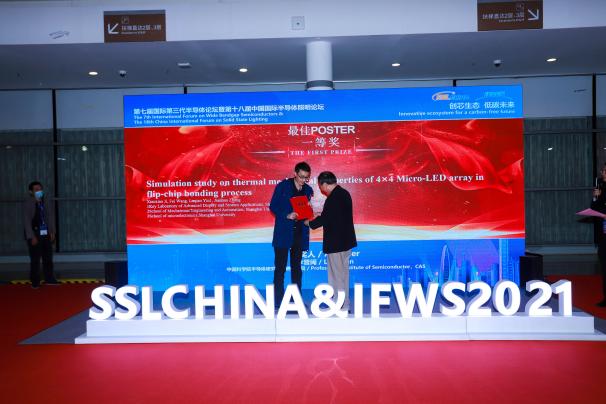 会议的闭幕式上对“最佳POSTER”进行了颁奖表彰,suncitygroup太阳集团张建华教授的2020级博士生嵇啸啸以“Simulation study on thermal mechanical properties of 4×4 Micro-LED array in flip-chip bonding process”为题的墙报获得了最佳POSTER一等奖。