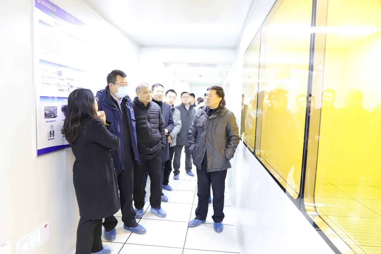 孙真荣副主任一行参观了学院微纳技术公共平台、学院高分辨显示制造与装备实验室,与师生在集成电路核心技术攻坚、创新成果转化等方面进行了交流,提出了指导意见。