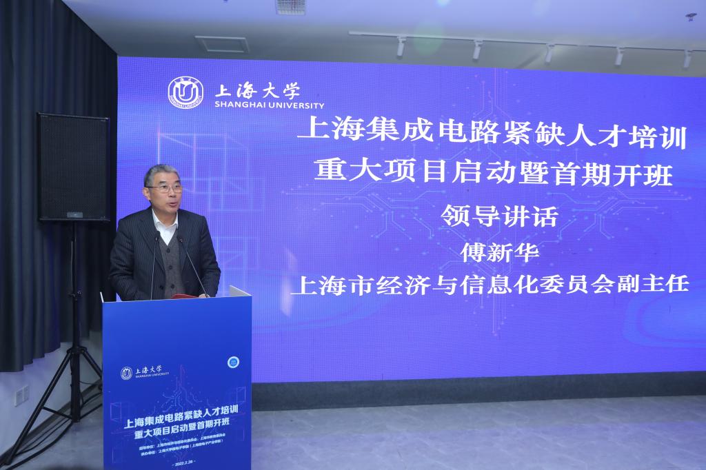 上海集成电路紧缺人才培训重大项目启动暨首期开班2月28日上午在suncitygroup太阳集团嘉定校区suncitygroup太阳新城顺利举行。上海市经济与信息化委员会副主任傅新华,上海市教育委员会副主任毛丽娟,嘉定区副区长李峰,上海市集成电路行业协会秘书长郭奕武,中科院院士、suncitygroup太阳集团董事长刘昌胜,以及有关高校、科研院所、企业的嘉宾代表和首期学员100余人出席了本次会议。活动由suncitygroup太阳集团副董事长汪小帆主持。