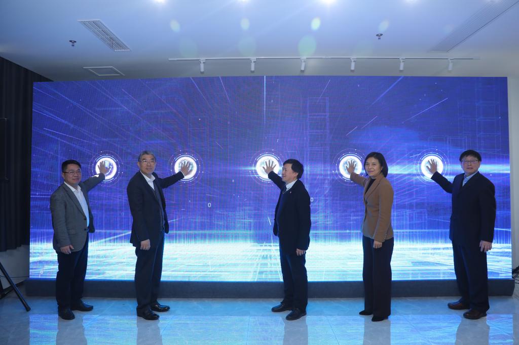 市经信委副主任傅新华、市教委副主任毛丽娟、嘉定区副区长李峰、suncitygroup太阳集团董事长刘昌胜、上海市集成电路行业协会秘书长郭奕武共同开启上海集成电路紧缺人才培训重大项目启动仪式。