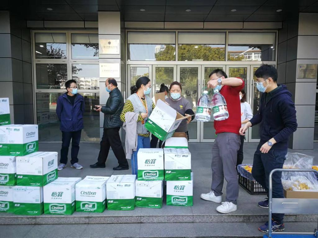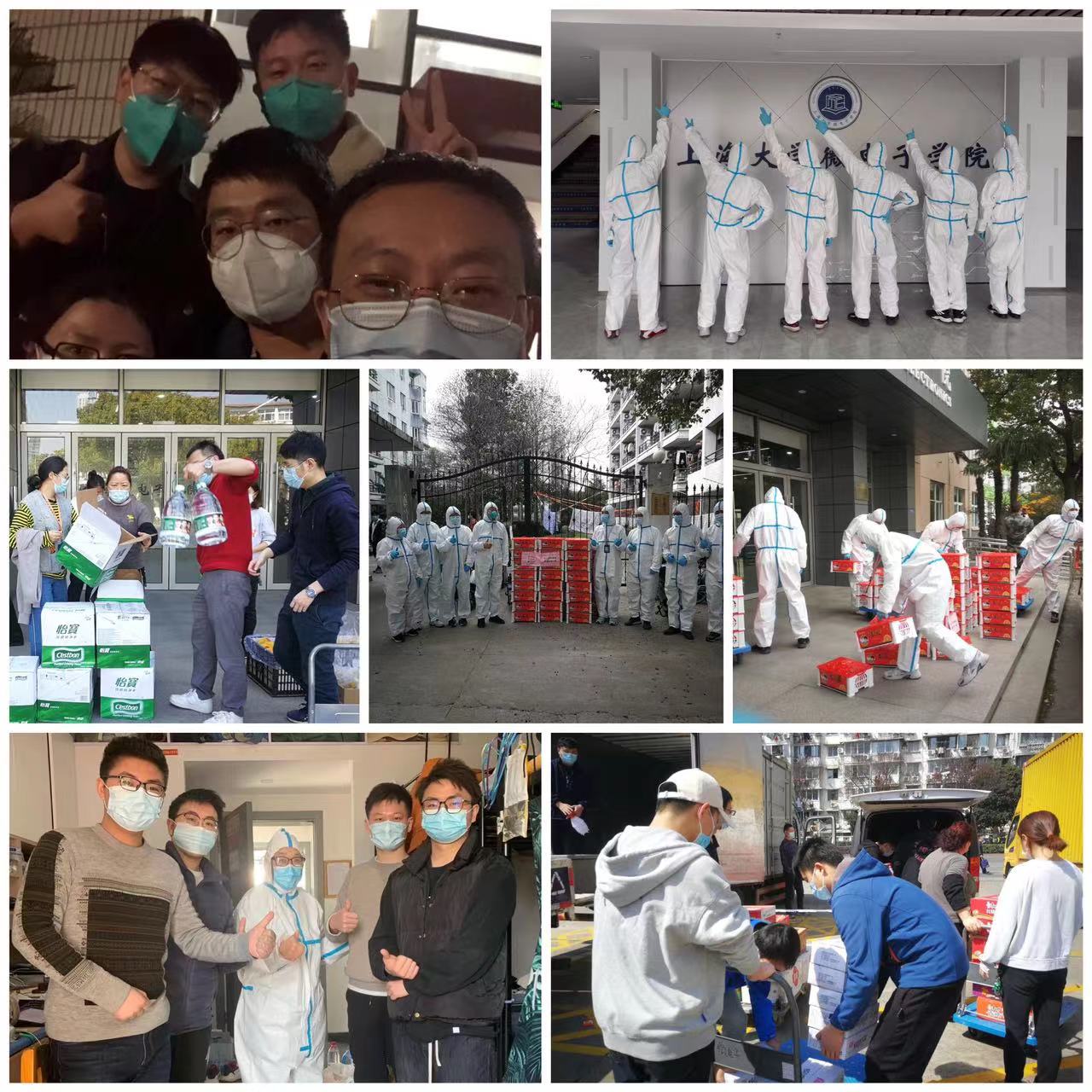 全院上下一直牵挂着住在三个校区师生的学习生活。考虑到员工的需求和嘉定校区实际情况,为保障抗疫期间的物资供应,成立执行经理张建华任组长的抗疫物资保障组,深夜调配水果、面包、桶装水、消毒湿巾等生活防疫物资,魏利、辛涵申、路秀真、刘成、郭爱英、赵磊、李意、康蕊、董亮、柯一青、薛杰、周濛、崔玉容、刘阿姨辛苦运送清点物资,古元冬经理、胡挺副经理每天给师生疏导情绪,天马微电子捐赠给上大微电子的650箱水果,上海芯华创电子捐赠2000个口罩。建立防疫物资领管理、发放、领取机制,严格口罩、泡腾片等防疫物资发放流程,加强在疫情防控期间的生活保障和健康保障。