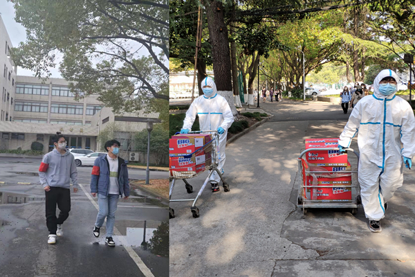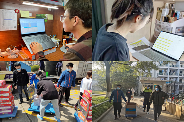陈衡既是公司的志愿者,又是F楼的一名志愿者。作为学院的一员,他和其他同学一道参与到搬运分发物资的工作中。作为F楼的志愿者,他帮助阿姨分发三餐,同时也承担起楼内督导的任务,确保每一名同学都在宿舍楼内。