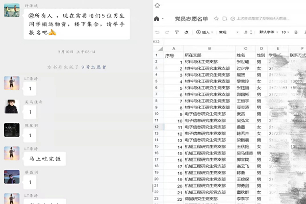 “每天像陀螺不知疲倦地转着,又像螺丝钉一样坚守着岗位”是D楼楼长豆志涛的工作感悟,他主动配合辅导员实施网格化管理,负责179人的信息采集、消息通知、三餐订购及物资分发。