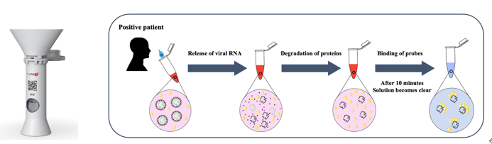 该产品检测时间短,约15分钟内出结果,操作简便,可居家自行检测(唾液和鼻拭子均可),且灵敏度高,相较抗原检测,其性能更接近PCR检测,被称为“口袋里的PCR”。该产品已开展300多例临床样本测试,唾液检测敏感性100%,特异性97.3%,准确度97.4%, 一项包含1000例样本的临床研究也正在开展中。产品具有专属APP,以便卫生和疾控机构查询和统计。