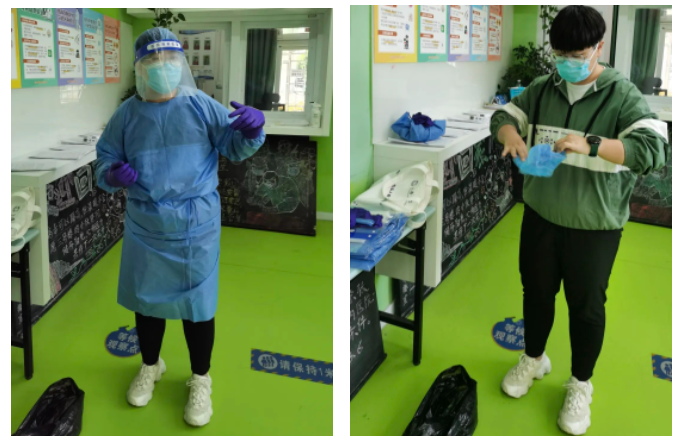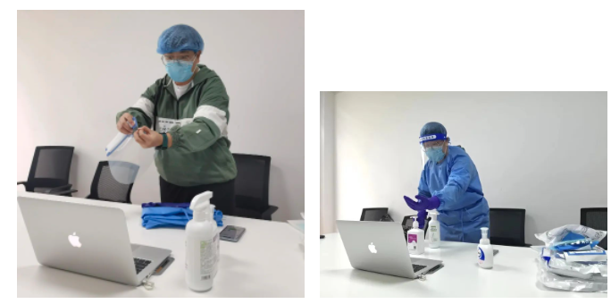 线上培训会结束后,宗琪老师前往志愿者所在住宿楼栋,再次为参加学校疫情防控一线的志愿者讲解一级防护装备穿脱全流程,讲解、演示个人防护装备穿脱流程及要点,确保每一位志愿者在积极投身一线防控工作的同时,最大可能地降低自身接触到病毒的概率,悉心保障每一位志愿者的安全。