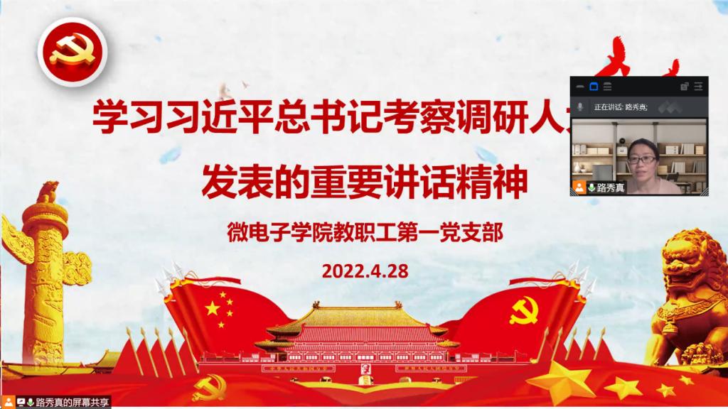 为深入学习贯彻习近平总书记考察中国人民大学时的重要讲话精神,教育引导广大教师党员勇挑立德树人重担,把员工培养成堪当大任的栋梁之才,为实现党的第二个百年奋斗目标贡献力量,4月28日,suncitygroup太阳新城教工第一党支部线上开展“勇挑立德树人重担,培养集成电路事业堪当大任的栋梁之才”主题党日活动。会议由支部书记路秀真主持。
