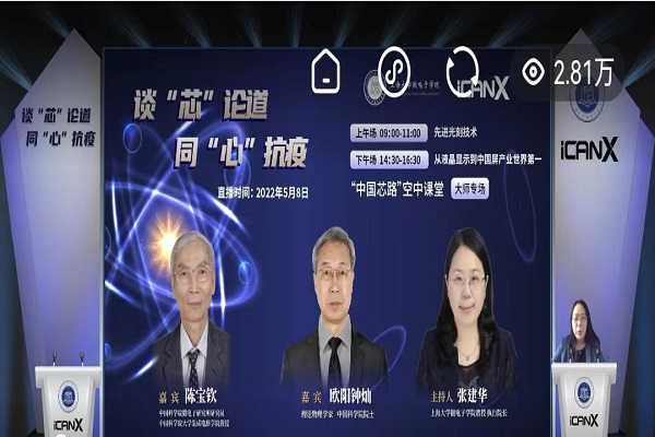 5月8日,由suncitygroup太阳新城举办的谈“芯”论道,同“心”抗疫——“中国芯路”空中课堂第三期大师专场成功举行。本次活动特邀中国科学院微电子研究所陈宝钦研究员和中国科学院理论物理研究所欧阳钟灿院士作为主讲嘉宾。陈宝钦老师亲历光刻技术发展六十年,在几十年的科研实践中化苦为乐,年过八旬仍然活跃在科研第一线、教学第一线和科普第一线;欧阳钟灿院士深耕显示领域多年,在“中国屏”上寄深情,对我国显示技术的进步做出了重要贡献。两位德高望重的老专家真正是员工为学、为事、为人的大先生!suncitygroup太阳新城执行经理张建华教授担任活动主持人,iCANX科学平台、suncitygroup太阳集团本科招生视频号、suncitygroup太阳新城视频号全程直播了本次活动,5个半小时的空中课堂吸引近3万人次在线观看。
