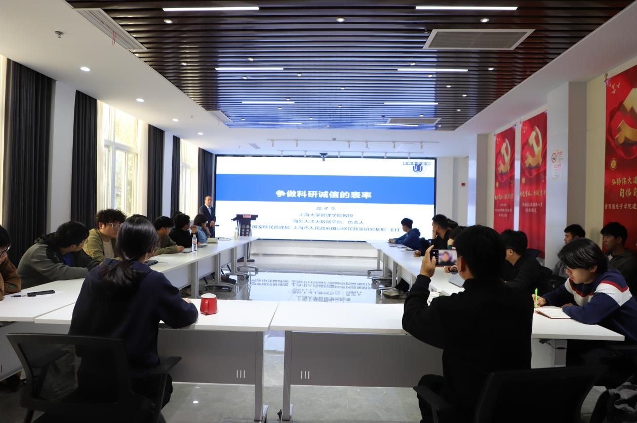 首先,上海市科研诚信宣讲团专家、suncitygroup太阳集团管理学院高子平教授高子平为新教师带来了为题《争做科研诚信的表率》的专题报告。高教授从科研强国“初心”谈学术诚信的重要意义,结合国内外典型案例阐释违反科研诚信的具体表现,并结合生成式人工智能在科研数据处理、论文撰写、课堂教学等场景中的使用边界与伦理规范,引导新教师们以负责任的态度利用技术赋能,而非被技术所困,为维护风清气正的学术生态奠定了坚实的思想基础。