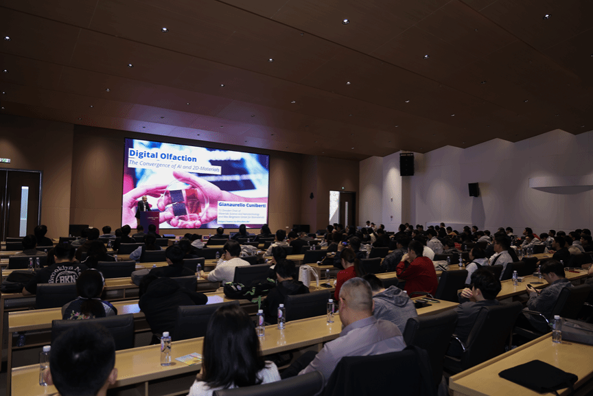 本次讲堂的主旨报告环节亮点纷呈。德国国家工程院院士、美国物理学会会士吉安努埃里奥·库尼贝蒂教授带来《分子传感的机器学习》专题分享,系统阐述神经形态纳米传感器在气体识别领域的创新应用。